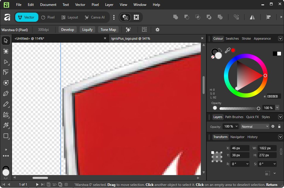 Dostaję plik JPG. Logo na białym tle. I prośbę: „koszulka ma być czarna, proszę wydrukować bez tego białego”. JPG nie obsługuje przezroczystości. To białe dookoła to nie jest „tło do usunięcia” — to integralna część pliku. Żeby to poprawić, trzeba albo przerobić grafikę na format z kanałem alfa (PNG, SVG, AI), albo ręcznie wycinać tło. A ręczne wycinanie skomplikowanego logo to dodatkowy czas i dodatkowy koszt. Jeszcze gorzej jest z AI-generowanymi grafikami. Midjourney nie daje plików wektorowych. Generuje bitmapę, często z artefaktami na krawędziach, z pseudoprzezroczystością, która przy bliższym spojrzeniu okazuje się jasnoszarą poświatą. Odseparowanie takiej grafiki od tła to czasem godzina pracy. I jeszcze jedno, bo to słyszę regularnie: „zapisałem jako PDF, więc jest wektorowy”. Nie, nie jest. PDF to tylko opakowanie — jak koperta. Możesz do niej włożyć list napisany odręcznie albo wydrukowany. Sam fakt, że jest w kopercie, nie zmienia tego, co jest w środku. Jeśli wrzucisz do PDF zdjęcie w 72 DPI, to nadal będzie zdjęcie w 72 DPI — tyle że teraz w ładniejszym formacie pliku. Plik wektorowy to taki, który zamiast pikseli opisuje kształty matematycznie — linie, krzywe, punkty. Dzięki temu możesz go powiększać do rozmiaru billboardu i nic się nie rozjedzie. Ale żeby PDF był wektorowy, grafika musi być wektorowa od samego początku — stworzona w Illustratorze, CorelDRAW, Inkscape czy innym programie do grafiki wektorowej. Eksport JPG-a z Canvy do PDF-a nie robi z niego wektora. To nadal ta sama bitmapa, tylko w kopercie z napisem „PDF”. Wysyłaj pliki w PNG z przezroczystym tłem albo — najlepiej — w formacie wektorowym (AI, EPS, SVG). Twój drukarz podziękuje Ci osobiście.