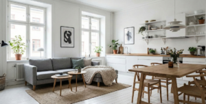 • Dlaczego wciąż króluje? Polskie mieszkania mają średnio 50–60 m² i często cierpią na deficyt światła dziennego w okresie jesienno-zimowym. Skandynawska paleta (biel, jasne drewno, szarości) działa jak „rozświetlacz” – optycznie powiększa przestrzeń i czyni ją lżejszą.