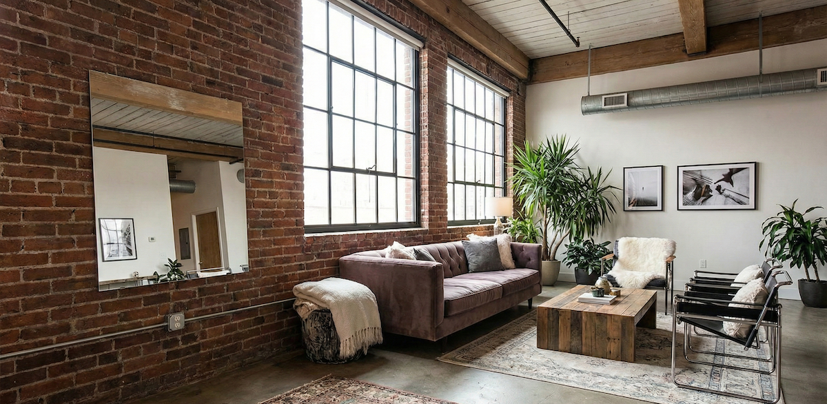 • Dlaczego zyskuje? To estetyka, która „wybacza” surowość i podkreśla miejski charakter życia. Stanowi też wyraźną kontrę dla „błyszczących” i przeładowanych wnętrz z początku lat 2000.